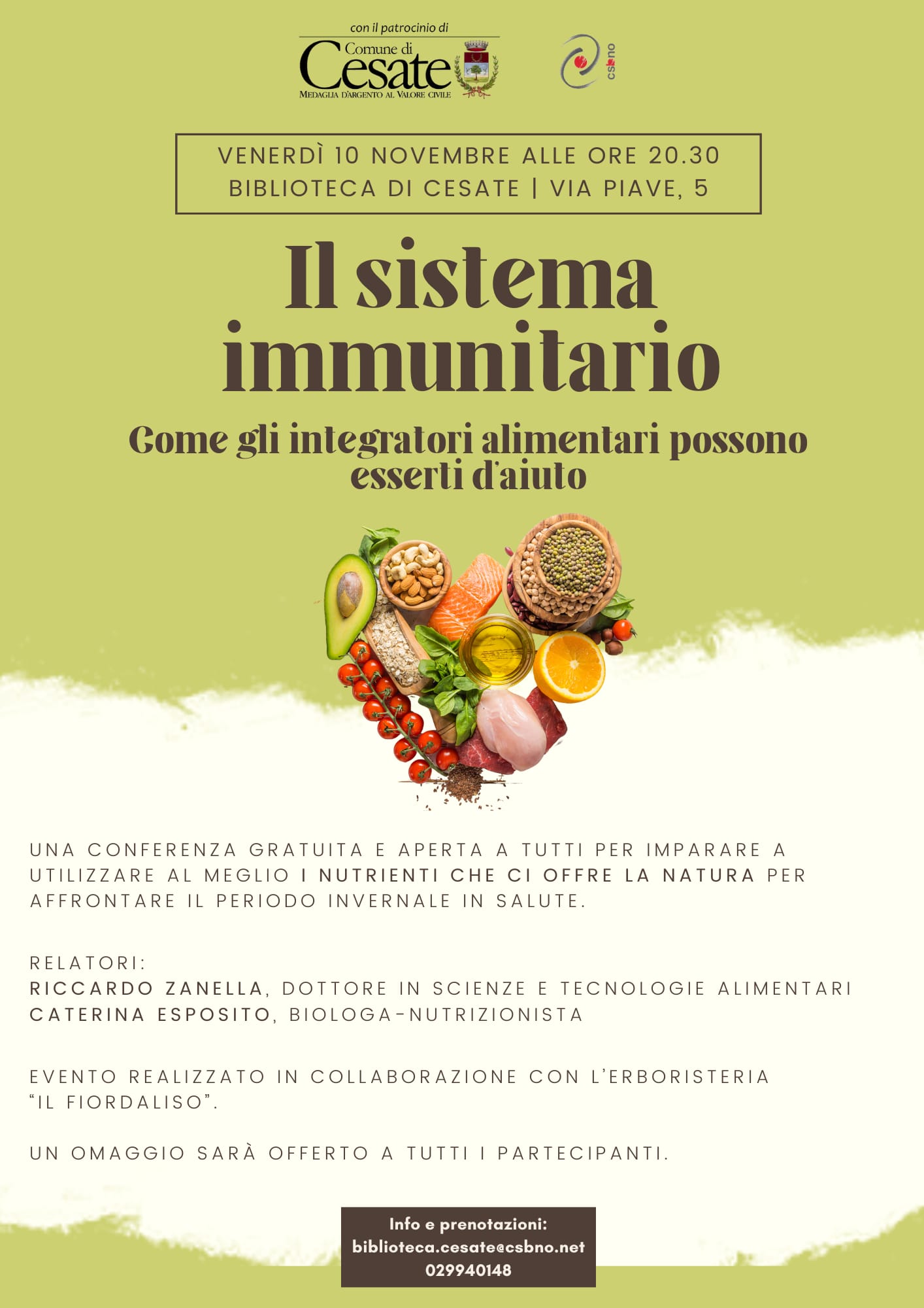 Venerdì 10 novembre in Biblioteca si parlerà del sistema immunitario e come prepararsi alla stagione invernale in salute !