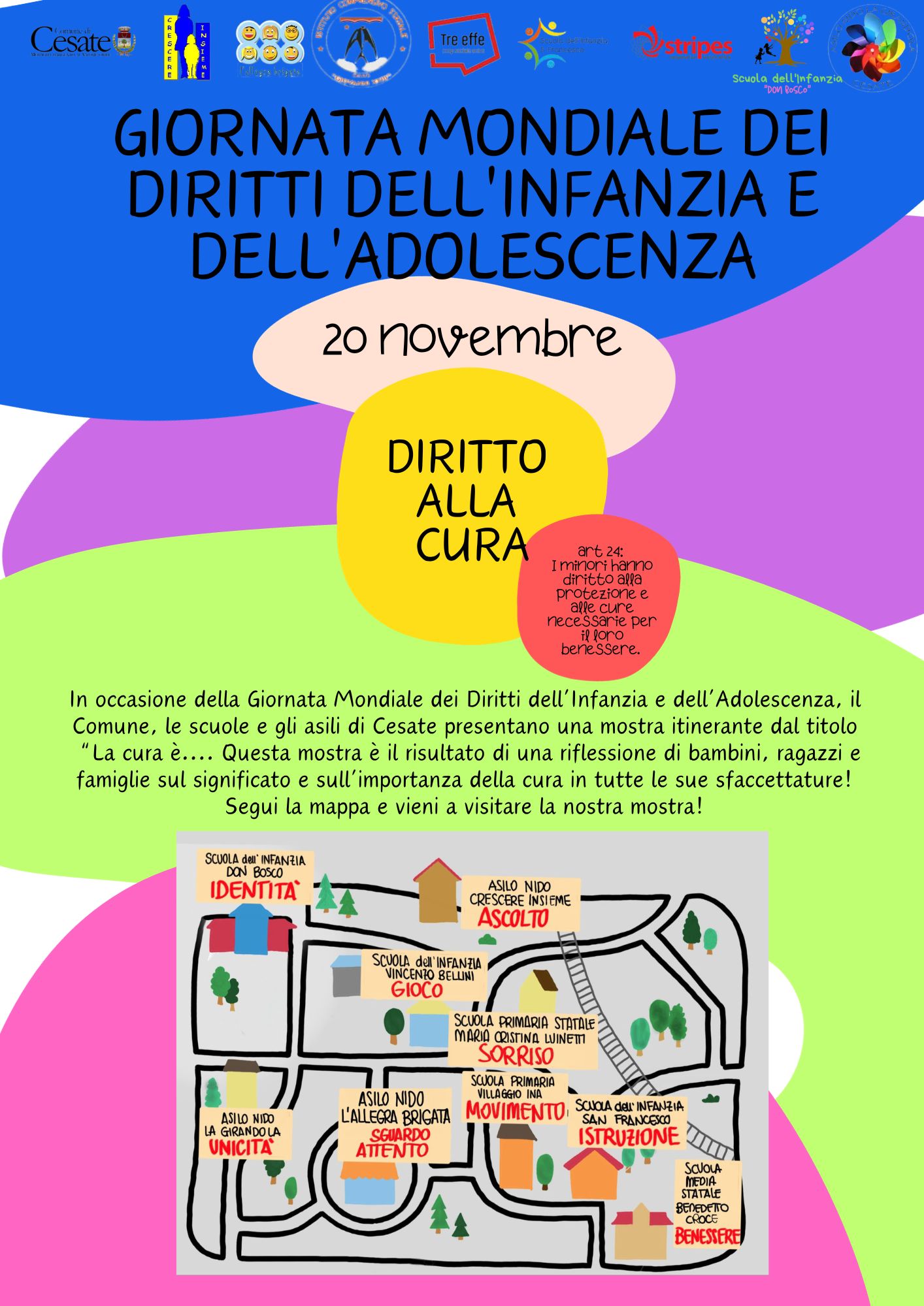 Tutti i bambini ed i ragazzi cesatesi sono stati coinvolti dagli insegnanti a considerare i diversi aspetti che riguardano “la cura” (identità, ascolto, gioco, sorriso, movimento, sguardo attento, unicità, benessere) realizzando una vera e propria mostra all’aperto che può essere visitata passeggiando lungo le cancellate delle diverse scuole ed anche presso il Municipio.