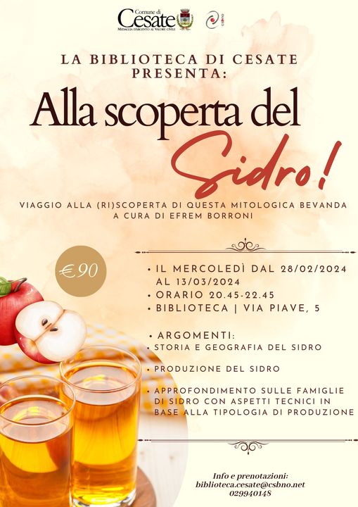 - Dal 28 febbraio al 13 marzo 2024, il mercoledì, dalle 20:45 alle 22:45. | Biblioteca di Cesate, via Piave 5 | costo: 90 euro