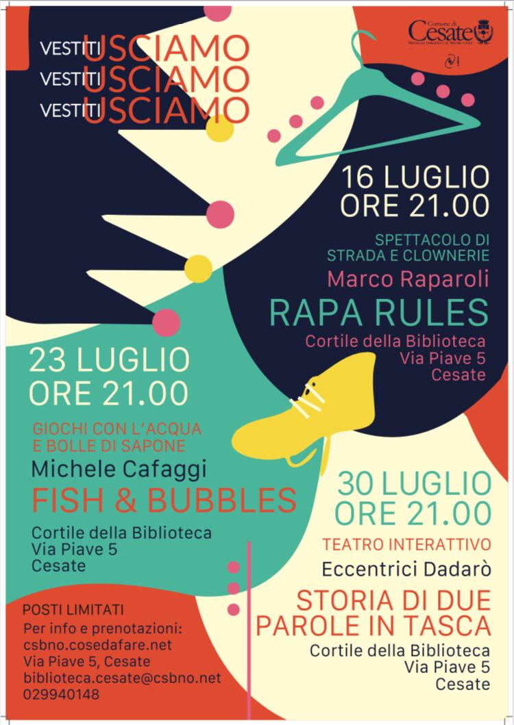 Teatro, Spettacoli, Giochi con l’Acqua e Bolle di Sapone, Musica e molto di più: è questa l’estate a Cesate, tutta da vivere in una rassegna di eventi sotto le stelle!